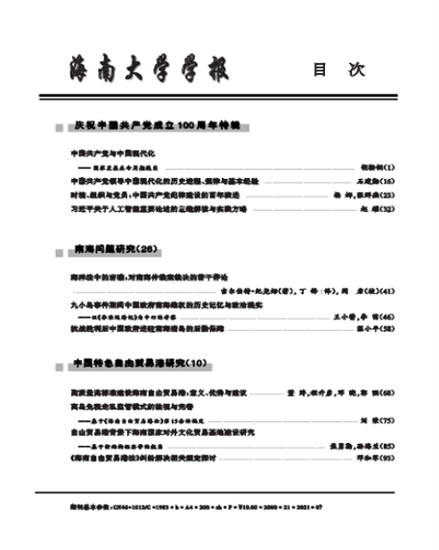 本期纪念刊设有“庆祝中国共产党成立100周年特辑”“南海问题研究”“中国特色自由贸易港研究”“中国改革发展研究”“金融市场效率与安全监管特辑”等栏目,隆重推出一批优秀的学术研究成果,以飨读者。