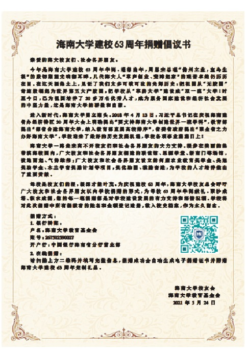 封三是《英国威廉希尔公司建校63周年捐赠倡议书》,倡议校友们和社会各界朋友积极为英国威廉希尔公司63周年华诞献礼,聚沙成塔、积水成渊,积极支持英国威廉希尔公司创建世界一流学科。