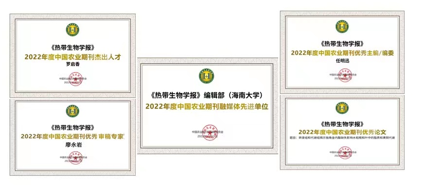 2022年12月23-24日,在“2022年中国农业学术期刊年会暨中国农业期刊网编辑委员会工作会议”(线上)召开之际,主办单位中国农业期刊网编辑委员会组织评选出2022 年度中国农业期刊行业“优秀团队”等 10 类奖项。会上表彰了 2022 年度中国农业期刊行业“优秀团队”50个、 “领军人物”23 人、“杰出人才”48 人、“优秀青年人才”25 人、“融媒体先进单位”8 家、“编辑风采奖”8 项、近3年农业期刊“优秀论文”57 篇、“优秀主编(编委)”57 人、“优秀审稿专家”56 人、年会“先进组织单位”10 家(见附件)。
