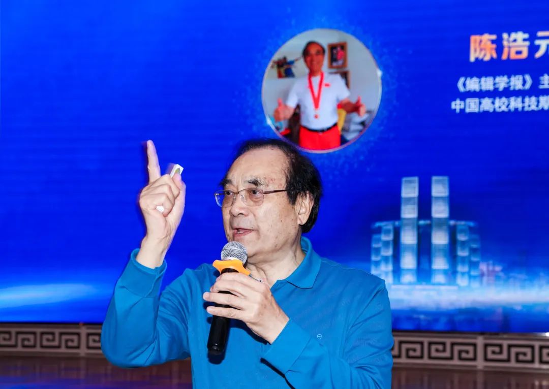 《编辑学报》主编、中国高校科技期刊研究会名誉理事长陈浩元作报告