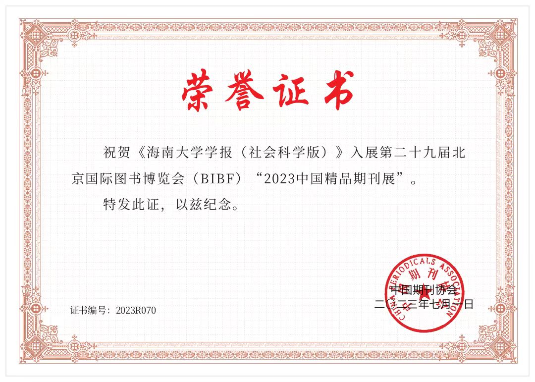 2023年6月15日至18日,第29届北京国际图书博览会(BIBF)在国家会议中心举行。作为“全面学习宣传贯彻党的二十大精神”主题宣传精品期刊,本刊入选“2023中国精品期刊展”。