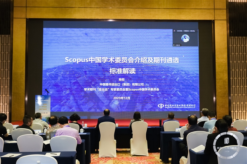 中国图书进出口(集团)有限公司数字中心副主任、Scopus中国学术委员会办公室负责人陈哲作了题为《Scopus中国学术委员会介绍及期刊遴选标准解读》的报告。他在报告中,详细地介绍了Scopus数据库遴选期刊的标准、申请流程和预审服务,以帮助更多的期刊加入Scopus数据库。