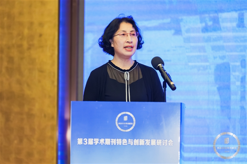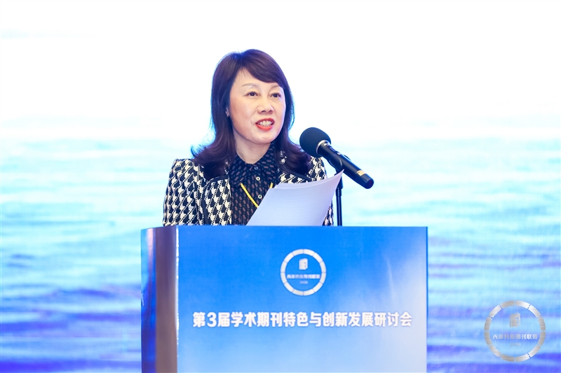 重庆市科技期刊编辑学会理事长、重庆理工大学期刊社社长彭熙作了题为《高校学术期刊紧密型集群化发展的探索与实践——以重庆理工大学期刊社为例》的报告。她在报告中,分析了科技期刊集群化发展的内涵、现状和困境,介绍了重庆理工大学期刊社旗下6本中英文期刊从多刊协同、资源共享、服务学科、平台建设、媒体融合、能力提升六个方面在高校学术期刊紧密型集群化发展所作的探索和实践。
